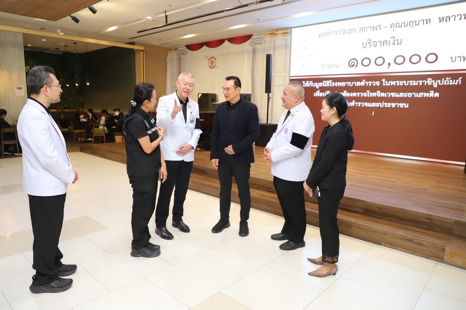 รับมอบเงินบริจาคจำนวน 100,000 บาท จาก พล.ต.อ.สถาพร หลาวทอง อดีตจเรตำรวจแห่งชาติ พร้อมคุณนฤนาท หลาวทอง ภริยา มอบให้มูลนิธิโรงพยาบาลตำรวจ ในพระบรมราชินูปถัมภ์ เพื่อใช้ในการปรับปรุงห้องตรวจโรคจิตเวชและยาเสพติดสำหรับข้าราชการตำรวจและประชาชน