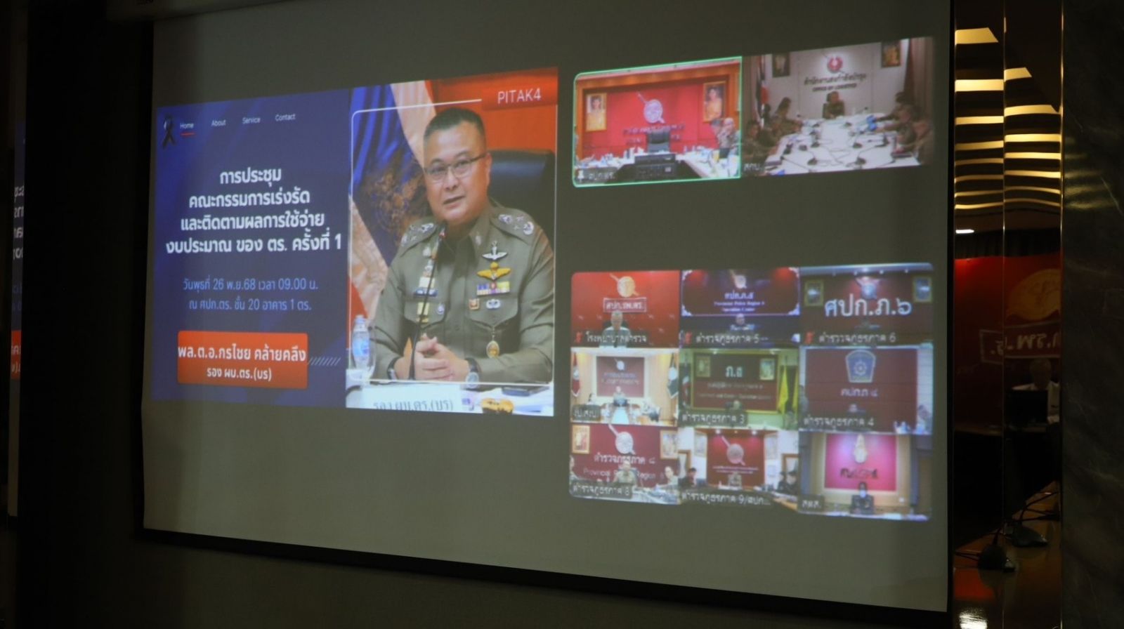 วันพุธที่ 26 พฤศจิกายน 2568 ณ ห้องประชุมชั้น 19 อาคารมหาภูมิพลราชานุสรณ์ 88 พรรษา โรงพยาบาลตำรวจ พล.ต.อ.กิตติ์รัฐ พันธุ์เพ็ชร์ ผู้บัญชาการตำรวจแห่งชาติ มอบหมายให้ พล.ต.อ.กรไชย คล้ายคลึง รอง ผู้บัญชาการตำรวจแห่งชาติ ประชุมคณะกรรมการเร่งรัดและติดตามผลการใช้จ่ายงบประมาณรายจ่ายประจำปีงบประมาณ พ.ศ.2569 ครั้งที่ 1