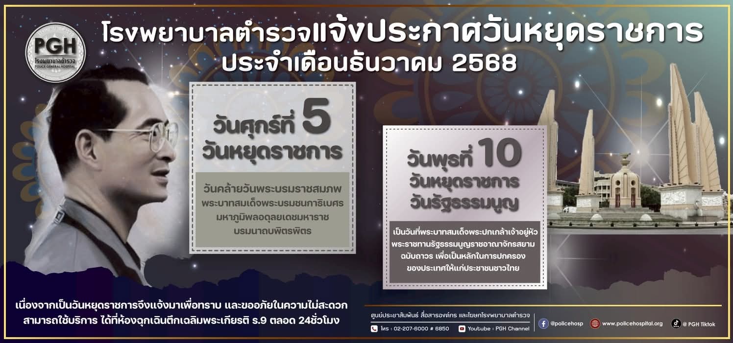 โรงพยาบาลตำรวจ ประกาศวันหยุดราชการประจำเดือน ธันวาคม 2568