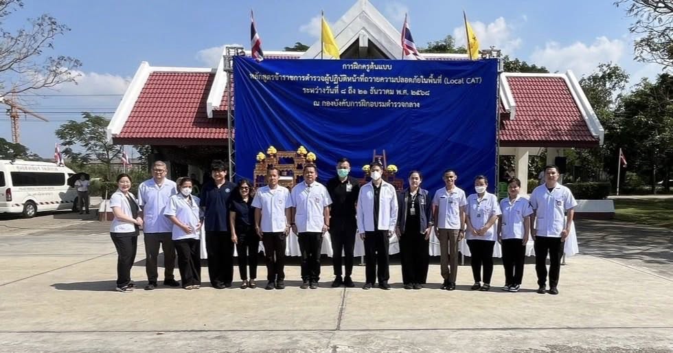 วันอาทิตย์ที่ 7 ธันวาคม 2568 ศูนย์ฝึกอบรมตำรวจกลาง ศาลายา จ.นครปฐม โรงพยาบาลตำรวจ โดย พล.ต.ท.ไพบูลย์ เจียมอนุกูลกิจ นายแพทย์ (สบ 8)โรงพยาบาลตำรวจ รักษาราชการแทน นายแพทย์ใหญ่ (สบ 8)สนับสนุนภารกิจ รักษาความปลอดภัย ด้านการแพทย์ในการฝึกครูต้นแบบ หลักสูตร Local Cat
