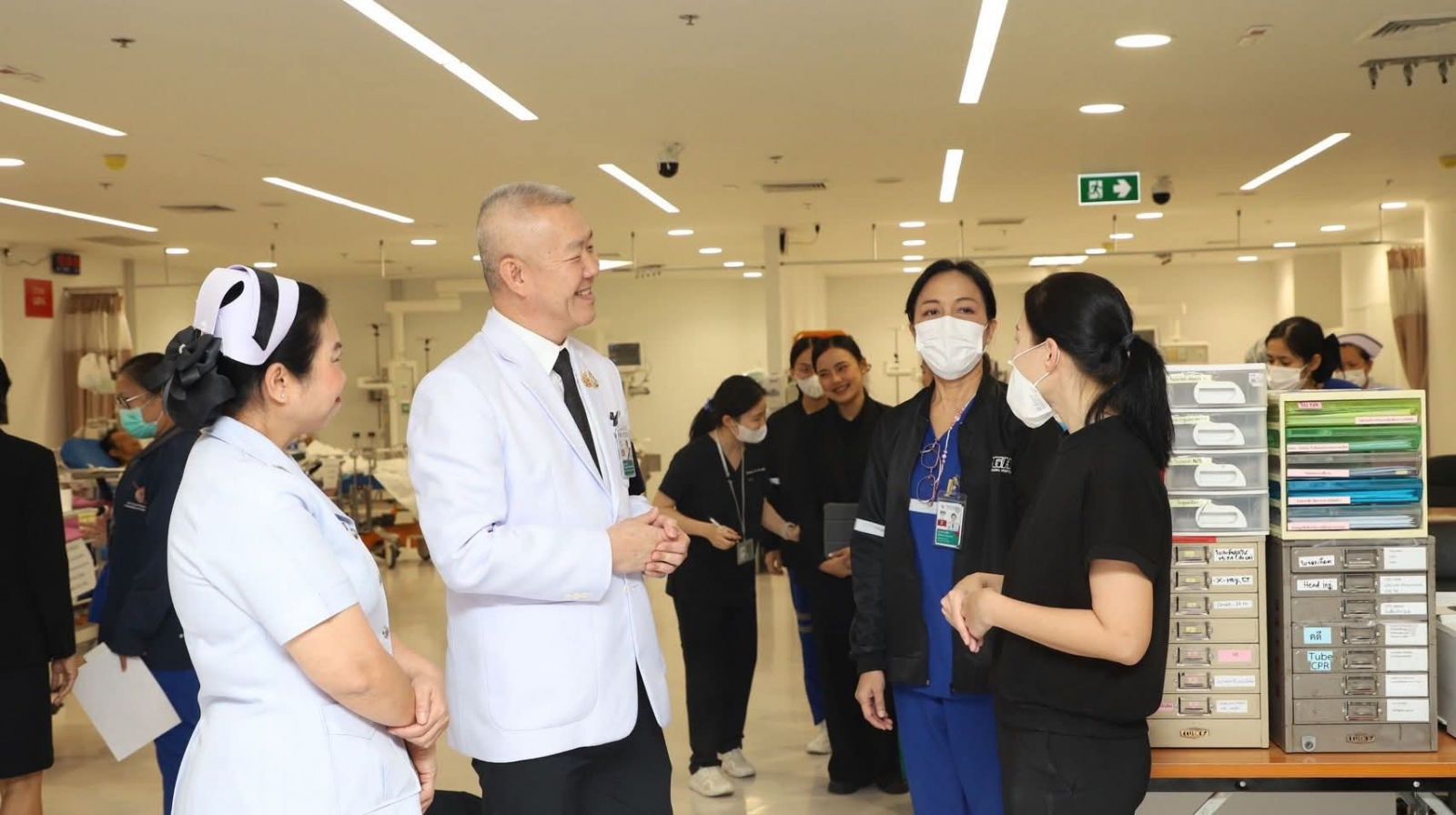จากนั้นตรวจเยี่ยมและให้กำลังใจเจ้าหน้าที่ผู้ปฏิบัติงานห้องฉุกเฉินและอุบัติเหตุ โรงพยาบาลตำรวจ เพื่อรับฟังปัญหาในการปฏิบัติงาน และแนวทางในการปรับปรุงพัฒนาคุณภาพการให้บริการแก่ข้าราชการตำรวจและประชาชน