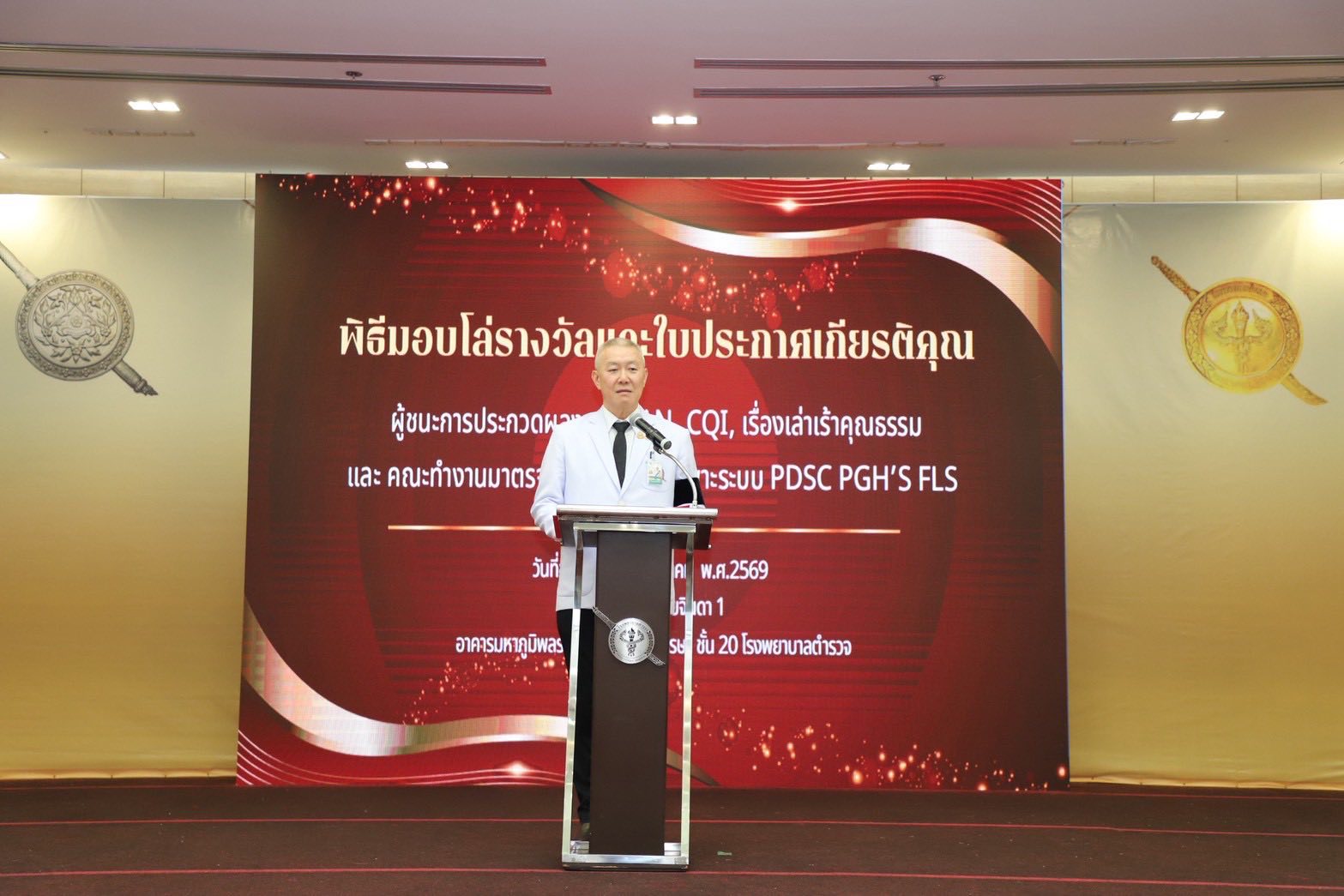วันอังคารที่ 20 มกราคม 2569 ณ ห้องประชุมชัยจินดา 1 ชั้น 20 อาคารมหาภูมิพลราชานุสรณ์ 88 พรรษา โรงพยาบาลตำรวจ พล.ต.ท.ไพบูลย์ เจียมอนุกูลกิจ นายแพทย์ (สบ 8)โรงพยาบาลตำรวจ รักษาราชการแทน นายแพทย์ใหญ่ (สบ 8)เป็นประธานมอบโล่รางวัลและใบประกาศเกียรติคุณแก่ผู้ชนะการประกวดผลงานด้านการพัฒนาคุณภาพและระบบงานของโรงพยาบาลตำรวจ ประกอบด้วยผลงาน LEAN, CQL, เรื่องเล่าเร้าคุณธรรม และคณะทำงานมาตรฐานเฉพาะโรค/ เฉพาะระบบ PDSC PGH’S FLS