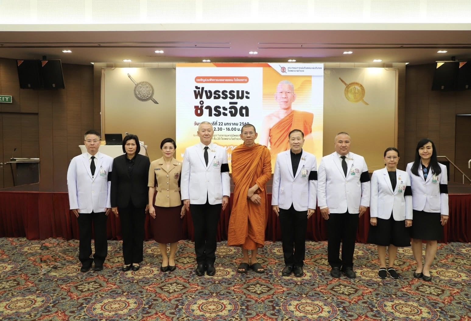 วันพฤหัสบดีที่ 22 มกราคม 2569 ณ ห้องประชุมชัยจินดา 1 ชั้น 20 อาคารมหาภูมิพลราชานุสรณ์ 88 พรรษา โรงพยาบาลตำรวจ พล.ต.ท.ไพบูลย์ เจียมอนุกูลกิจ นายแพทย์ (สบ 8)โรงพยาบาลตำรวจ รักษาราชการแทน นายแพทย์ใหญ่ (สบ 8)พร้อมด้วย คุณเอื้อมเดือน เจียมอนุกูลกิจ ภริยา, คณะผู้บริหาร โรงพยาบาลตำรวจ, เจ้าหน้าที่ในสังกัดโรงพยาบาลตำรวจ และประชาชนผู้สนใจ ฟังการบรรยายธรรมในโครงการ “ฟังธรรมะชำระจิต” ของคณะกรรมการแผ่นดินธรรมแผ่นดินทอง โรงพยาบาลตำรวจ เพื่อเสริมสร้างคุณธรรม จริยธรรม และความสงบทางจิตใจ