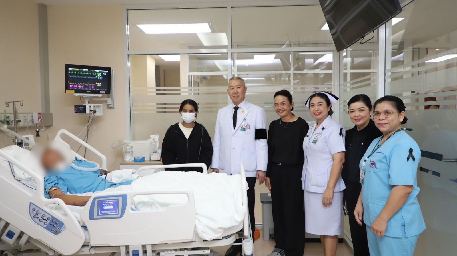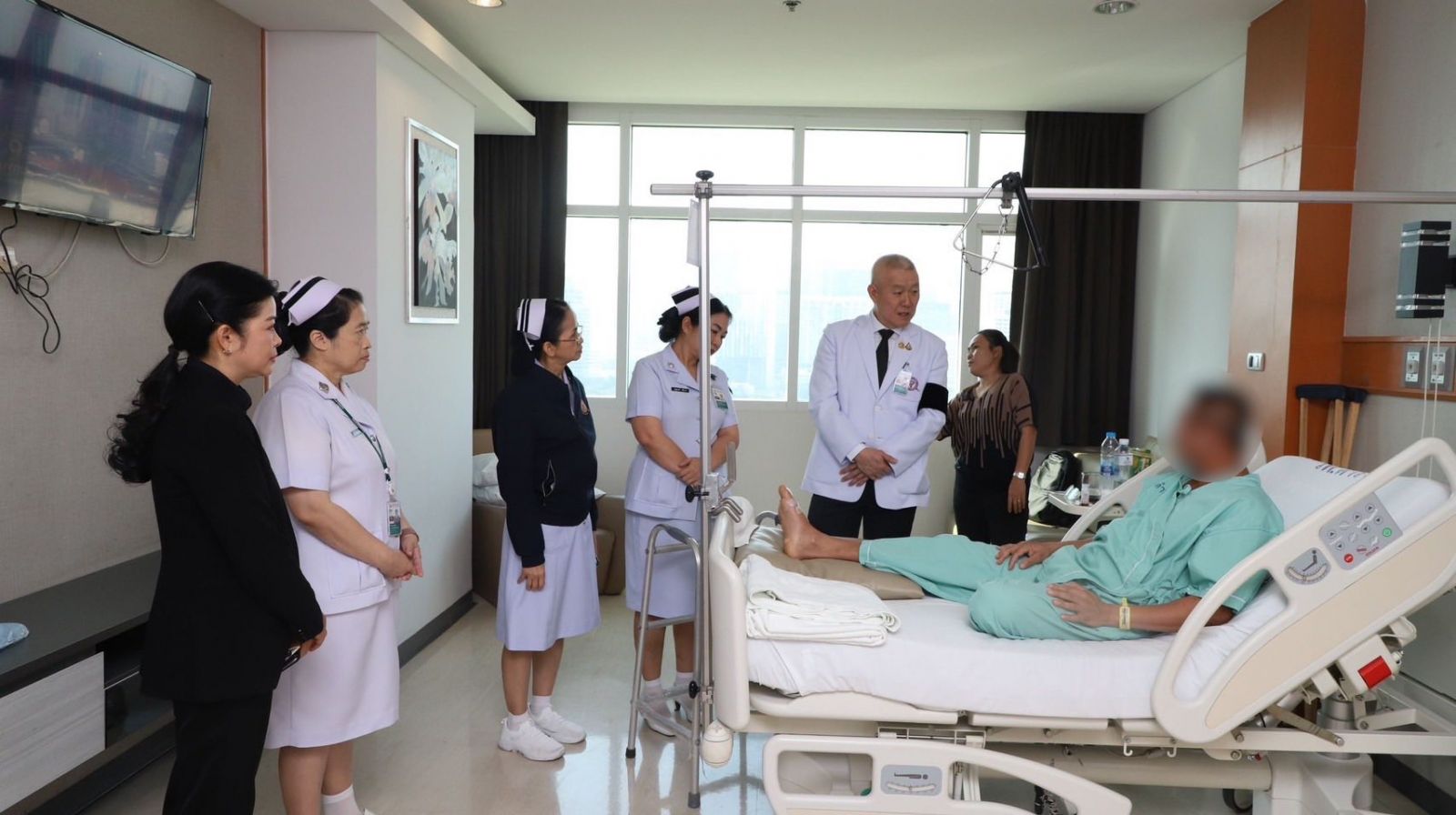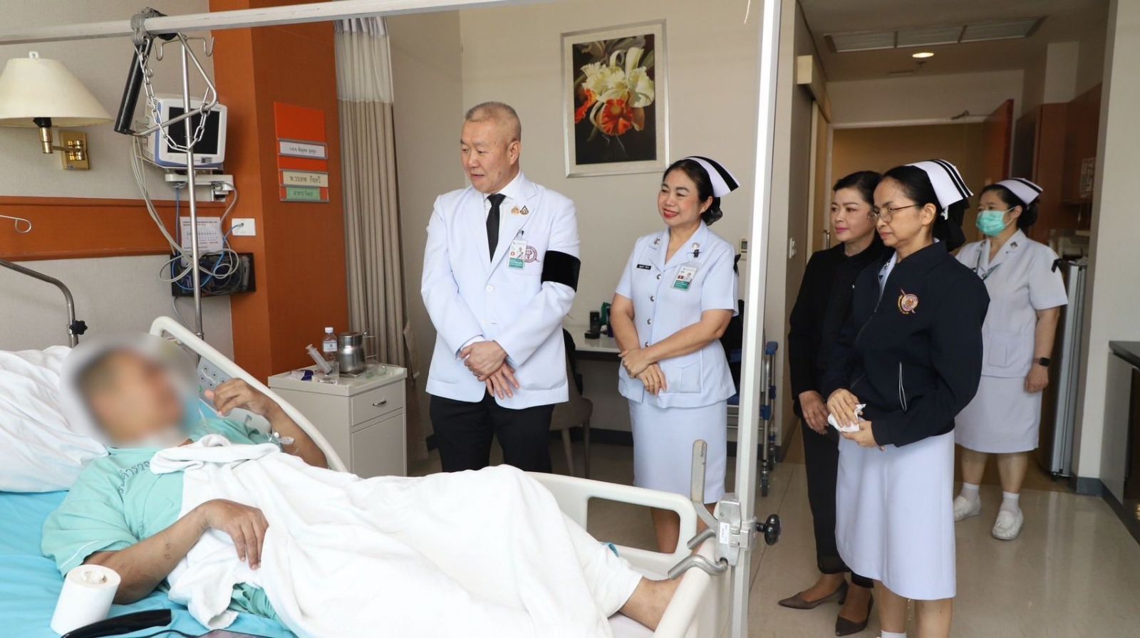 พล.ต.ท.ไพบูลย์ เจียมอนุกูลกิจ นายแพทย์ (สบ 8)โรงพยาบาลตำรวจ รักษาราชการแทน นายแพทย์ใหญ่ (สบ 8)ซักถามอาการผู้ป่วย พร้อมกำชับให้ทีมแพทย์ พยาบาลดูแลผู้ป่วยอย่างใกล้ชิด ซึ่งสร้างความซาบซึ้งใจให้กับผู้ป่วยและครอบครัวเป็นอย่างมาก