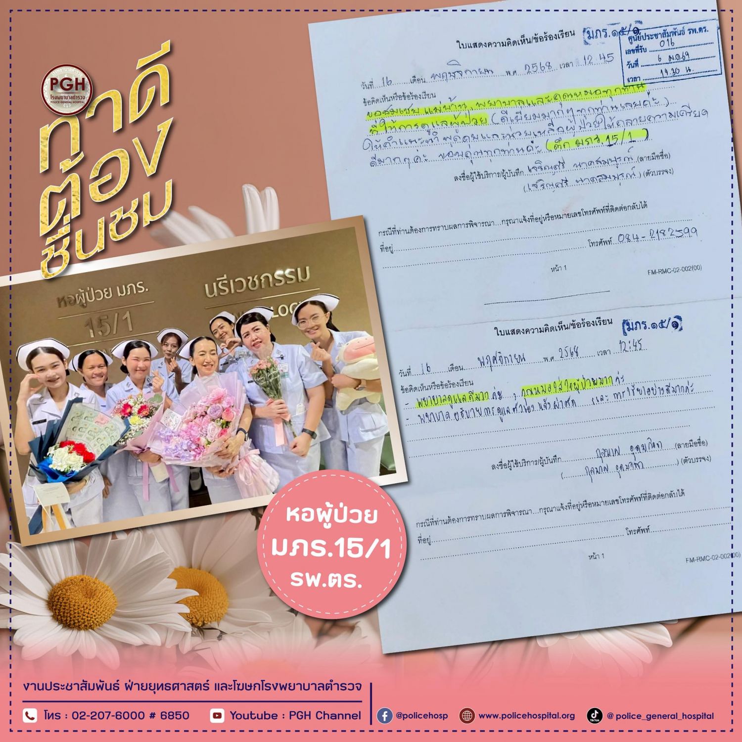 ทำดีต้องชื่นชม หอผู้ป่วย มภร.15/1 โรงพยาบาลตำรวจ