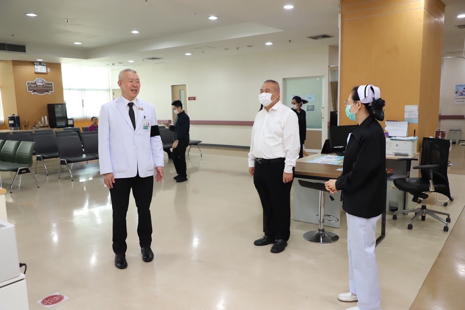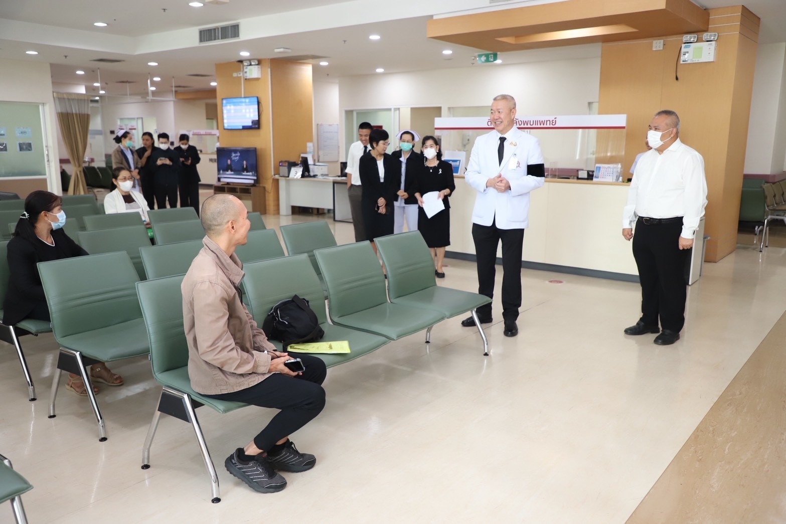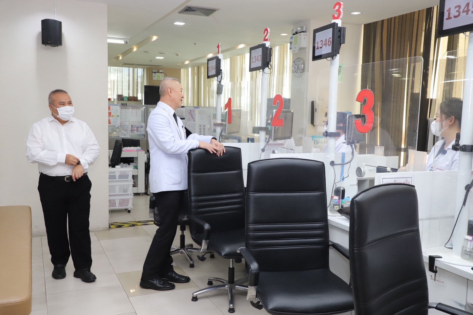 จากนั้นตรวจเยี่ยมห้องเจาะเลือด ชั้น 4 เพื่อรับทราบขั้นตอนการให้บริการ ความเพียงพอของบุคลากร ความสะดวกรวดเร็วในการให้บริการ ตลอดจนประเมินสภาพพื้นที่และศักยภาพในการรองรับผู้มารับบริการที่เพิ่มขึ้น เพื่อประกอบการพิจารณาวางแผนขยายพื้นที่และปรับปรุงห้องให้บริการให้มีความเหมาะสม ลดความแออัด และเพิ่มประสิทธิภาพในการให้บริการแก่ผู้มารับบริการในอนาคต