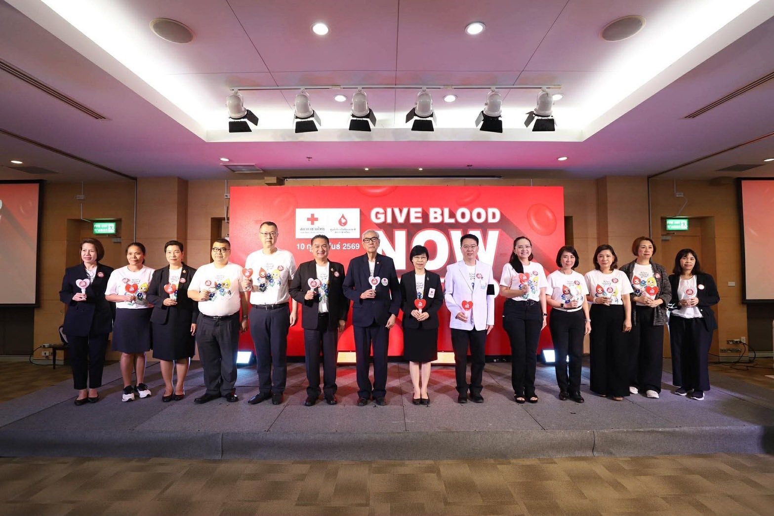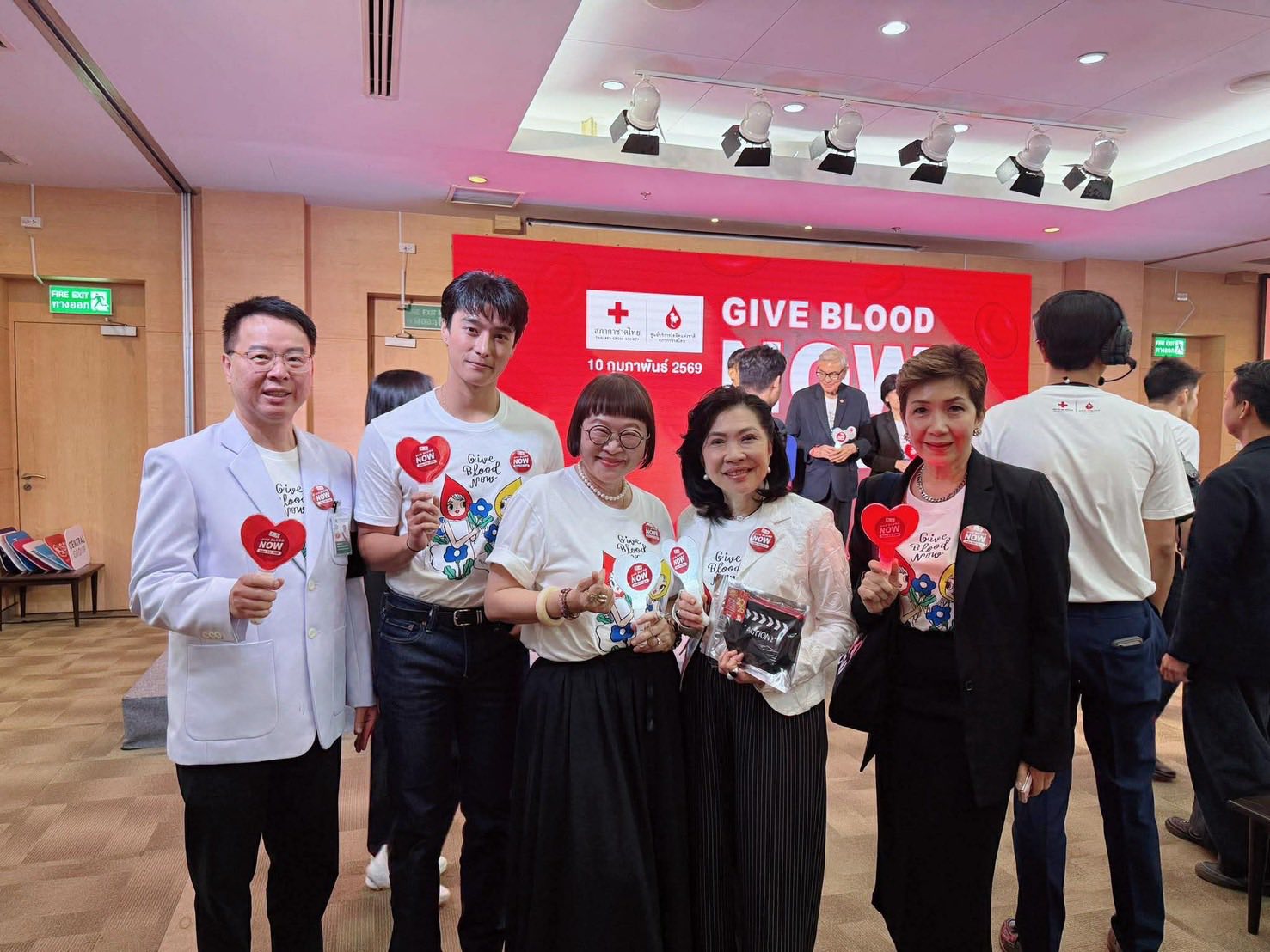 มีผู้บริหารสภากาชาดไทย ที่ปรึกษา และคณะกรรมการจัดหาและส่งเสริมผู้ให้โลหิตแห่งสภากาชาดไทย, ผู้บริหารหน่วยงานพันธมิตร ที่ให้การสนับสนุนจัดทำเสื้อยืดที่ระลึก "Give Blood Now" อาทิ บริษัท กลุ่มเซ็นทรัล จำกัด, บริษัท เดอะมอลล์ กรุ๊ป จำกัด, บริษัท กรุงเทพประกันภัย จำกัด (มหาชน), บริษัท ไทยเบฟเวอเรจ จำกัด (มหาชน), บริษัท ไทยประกันชีวิต จำกัด (มหาชน), บริษัท ไทยฮอนด้า แมนูแฟคเจอริ่ง จำกัด, ธนาคารกรุงไทย จำกัด (มหาชน), ธนาคารไทยพาณิชย์ จำกัด (มหาชน), ธนาคารอาคารสงเคราะห์ และธนาคารออมสิน