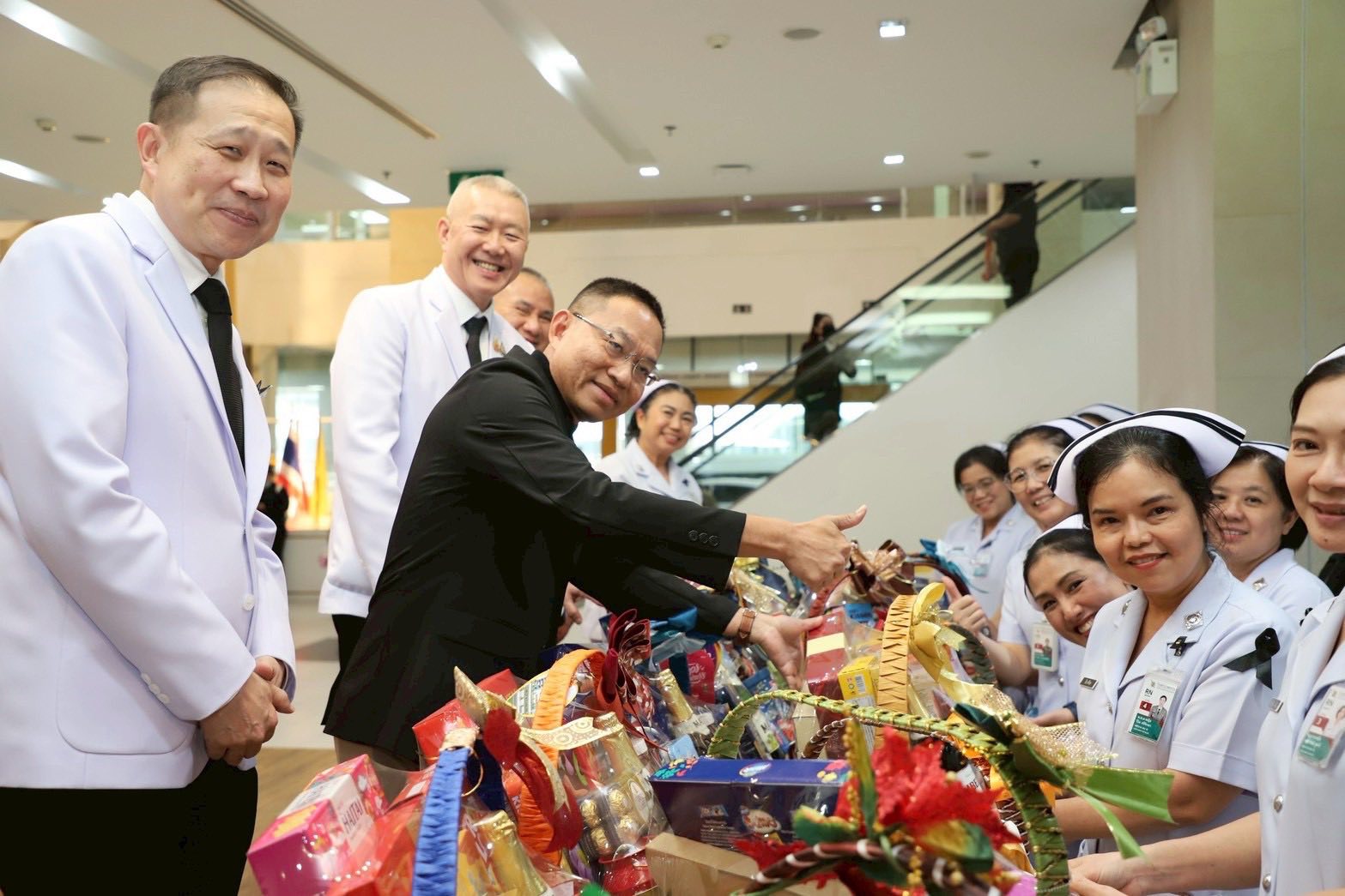 วันพฤหัสบดีที่ 12 กุมภาพันธ์ 2569 ณ ลานกิจกรรม ชั้น 2 อาคารมหาภูมิพลราชานุสรณ์ 88 พรรษา โรงพยาบาลตำรวจ พล.ต.ท.ยิ่งยศ เทพจำนงค์ ผู้ช่วยผู้บัญชาการตำรวจแห่งชาติ/โฆษกสำนักงานตำรวจแห่งชาติ มอบกระเช้า จำนวน 18 กระเช้า แก่หอผู้ป่วยสามัญ และ หอผู้ป่วย ไอ ซี ยู เนื่องในโอกาสใกล้ถึงเทศกาลวันวาเลนไทน์ เพื่อส่งต่อความปรารถนาดีและเพื่อเป็นขวัญกำลังใจแก่พยาบาล และบุคลากรที่ปฏิบัติหน้าที่ดูแลรักษาผู้ป่วยที่หอผู้ป่วยสามัญ และ หอผู้ป่วย ไอ ซี ยู