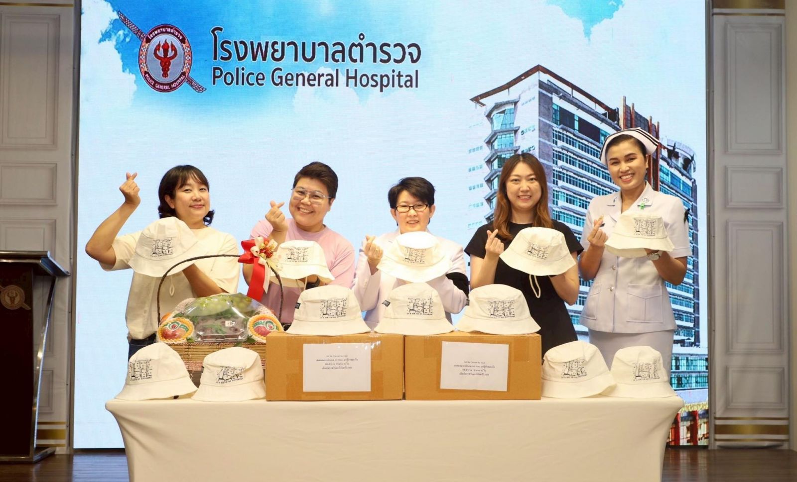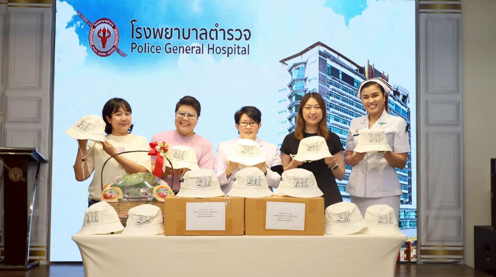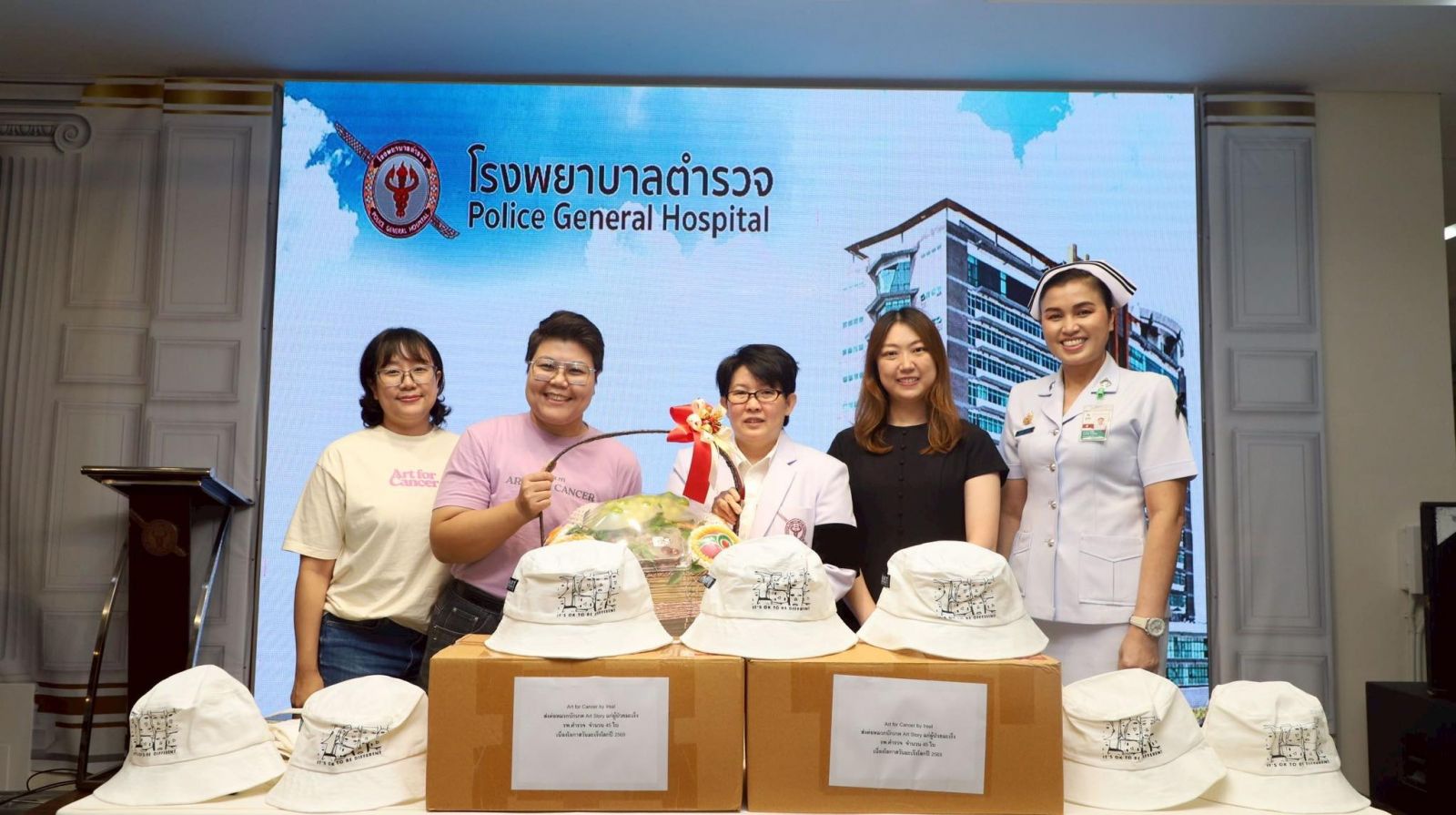 ซึ่งผู้รับมอบกล่าวขอบคุณผู้แทนจากบริษัท อาร์ต ออฟ ไลฟ์ วิสาหกิจเพื่อสังคม จำกัดที่บริจาคหมวกบักเกตจาก ART STORY " ให้โรงพยาบาลตำรวจในครั้งนี้ โรงพยาบาลตำรวจจะนำไปใช้ประโยชน์สูงสุดตาม วัตถุประสงค์ผู้บริจาค