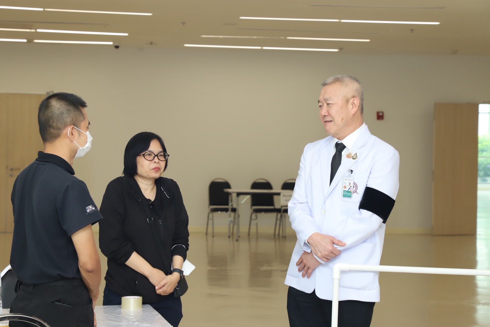 พร้อมกันนี้ ได้พูดคุยให้กำลังใจผู้เข้ารับการตรวจสุขภาพ และแนะนำให้รอตามลำดับขั้นตอนที่กำหนด เพื่อความเป็นระเบียบและความถูกต้องตามหลักเกณฑ์