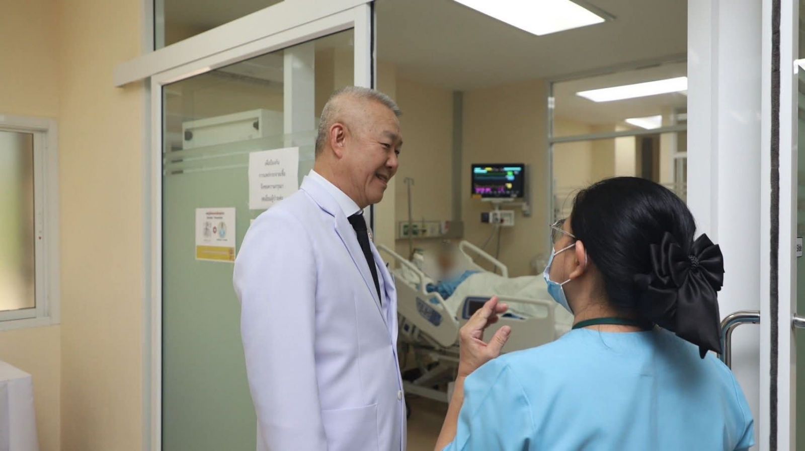 โดย พล.ต.ท.ไพบูลย์ เจียมอนุกูลกิจ นายแพทย์ (สบ 8)โรงพยาบาลตำรวจ รักษาราชการแทน นายแพทย์ใหญ่ (สบ 8)ซักถามอาการผู้ป่วย จากพยาบาล พร้อมกำชับให้ทีมแพทย์ พยาบาลดูแลผู้ป่วยอย่างใกล้ชิด ซึ่งสร้างความซาบซึ้งใจให้กับผู้ป่วยและครอบครัวเป็นอย่างมาก