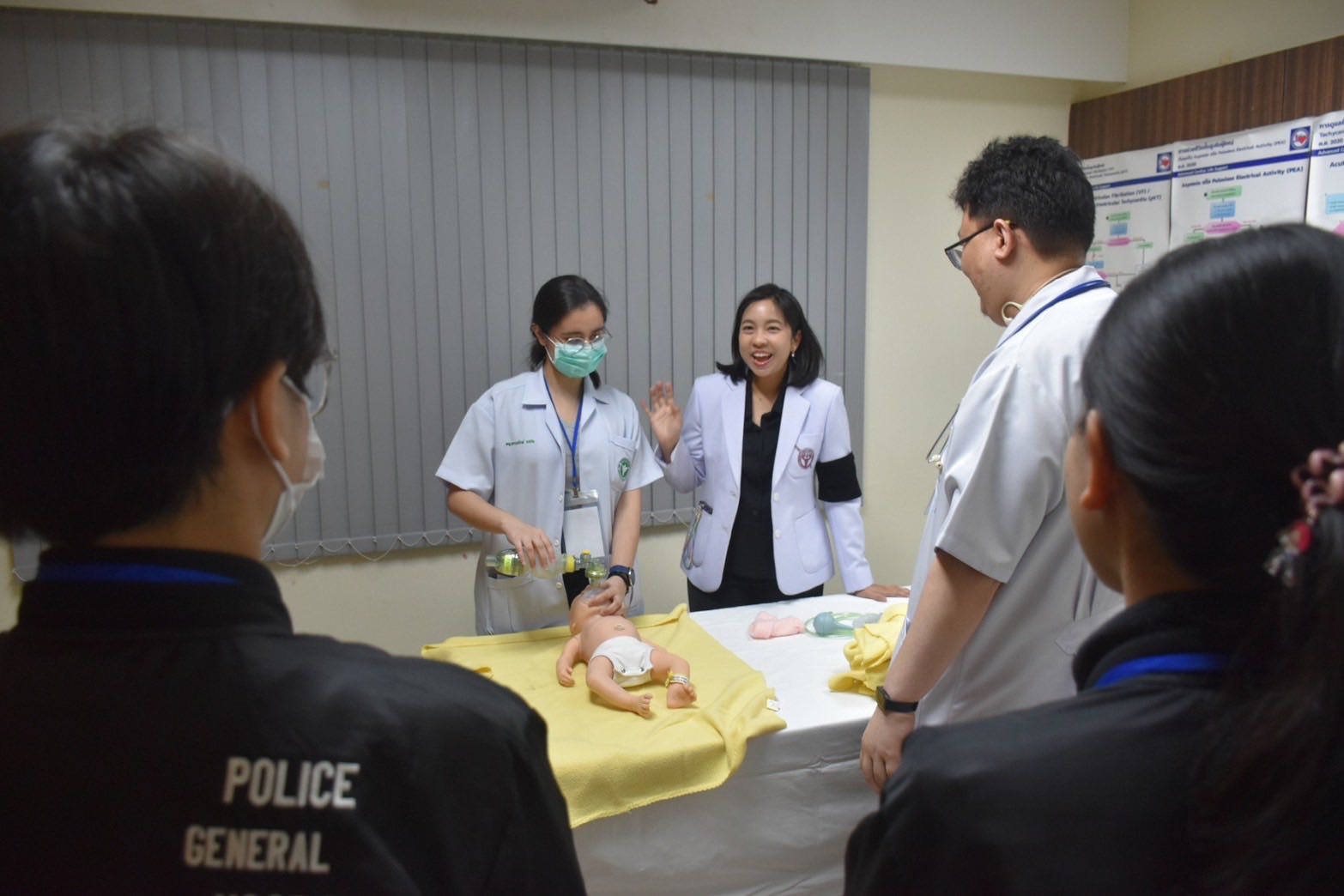 วันพฤหัสบดีที่ 19 กุมภาพันธ์ 2569 ณ ศูนย์ฝึกอบรมสถานการณ์จำลองทางการแพทย์ อาคารเฉลิมพระเกียรติรัชกาลที่ 9 ชั้น 9 โรงพยาบาลตำรวจ พล.ต.ท.ไพบูลย์ เจียมอนุกูลกิจ นายแพทย์ (สบ 8)โรงพยาบาลตำรวจ รักษาราชการแทน นายแพทย์ใหญ่ (สบ 8)มอบหมายให้ พ.ต.อ.หญิง วีนัส ตันอารีย์ นายแพทย์ (สบ 5) กลุ่มงานกุมารเวชกรรม โรงพยาบาลตำรวจ ปฏิบัติหน้าที่หัวหน้ากลุ่มงานกุมารเวชกรรม โรงพยาบาลตำรวจ เปิดโครงการฝึกอบรมปฏิบัติการกู้ชีวิตทารกแรกเกิด ที่จัดขึ้นโดย กลุ่มงานกุมารเวชกรรมม โรงพยาบาลตำรวจ ซึ่งพ.ต.อ.ณพล จิตรศรีศักดา นายแพทย์ (สบ 4 ) กลุ่มงานกุมารเวชกรรม โรงพยาบาลตำรวจ เจ้าของโครงการให้การต้อนรับและกล่าวรายงาน