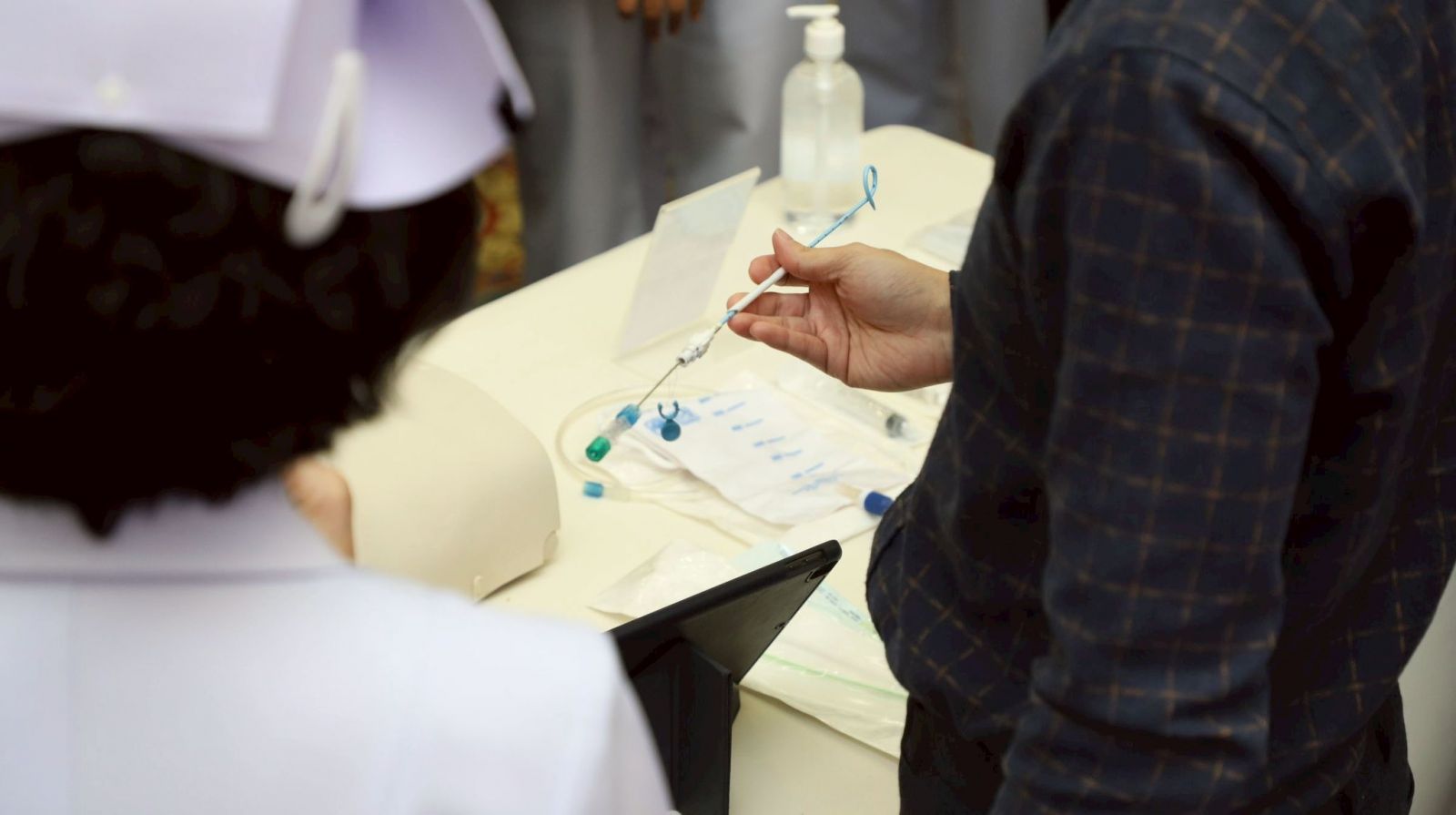 การอภิปรายและกิจกรรมกลุ่ม เรื่องการพยาบาลผู้ป่วยที่ใส่สายระบายผ่านทางผิวหนัง โดยแบ่งออกเป็น 2 กลุ่ม