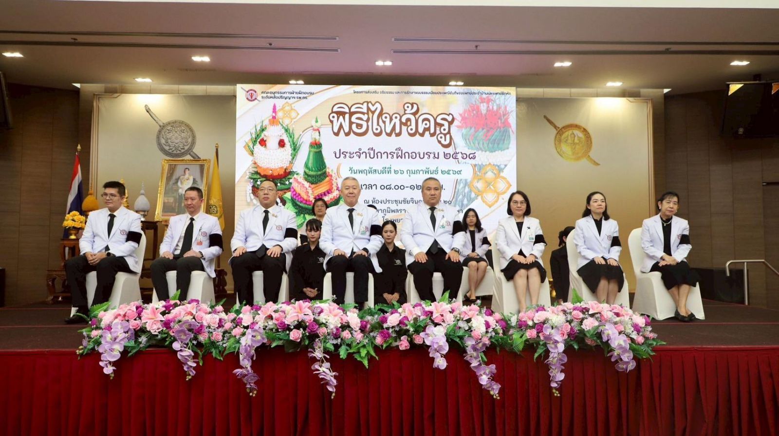 วันพฤหัสบดีที่ 26 กุมภาพันธ์ 2569 ณ ห้องประชุมชัยจินดา 1 ชั้น 20 อาคารมหาภูมิพลราชานุสรณ์ 88 พรรษาโรงพยาบาลตำรวจ พล.ต.ท.ไพบูลย์ เจียมอนุกูลกิจ นายแพทย์ (สบ 8)โรงพยาบาลตำรวจ รักษาราชการแทน นายแพทย์ใหญ่ (สบ 8)เป็นประธานพิธีไหว้ครู ประจำปีการฝึกอบรม พ.ศ.2568