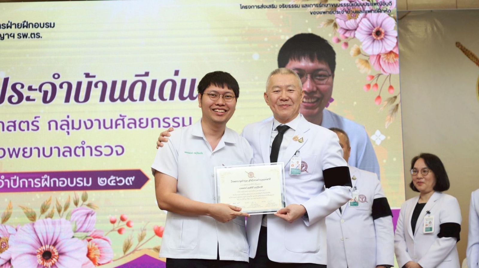 โดยมีคณะผู้บริหาร โรงพยาบาลตำรวจ และคณะอนุกรรมการฝ่ายฝึกอบรมระดับหลังปริญญาสำหรับแพทย์และทันตแพทย์ โรงพยาบาลตำรวจเข้าร่วมพิธีอย่างพร้อมเพรียง ทั้งนี้เพื่อสืบสานขนบธรรมเนียมอันดีงามของวิชาชีพแพทย์และทันตแพทย์ อันเป็นการแสดงออกถึงความกตัญญูกตเวทีและความเคารพต่อครูอาจารย์ผู้ถ่ายทอดองค์ความรู้ ประสบการณ์ และแบบอย่างทางจริยธรรม ตลอดจนปลูกฝังคุณธรรม จริยธรรม และมาตรฐานวิชาชีพแก่ผู้เข้ารับการฝึกอบรม