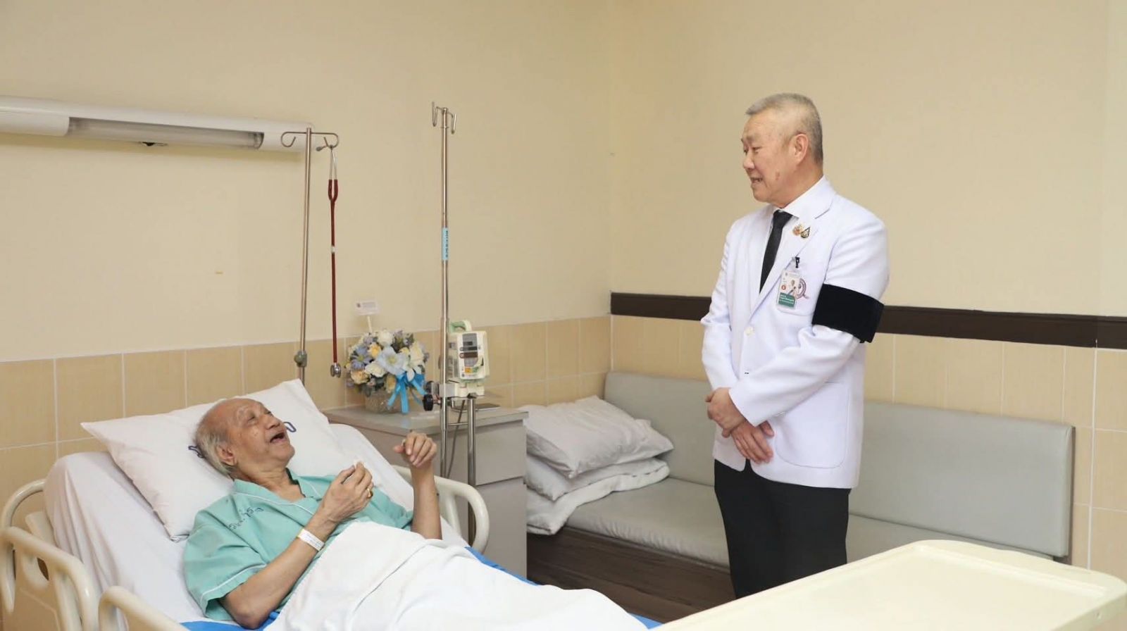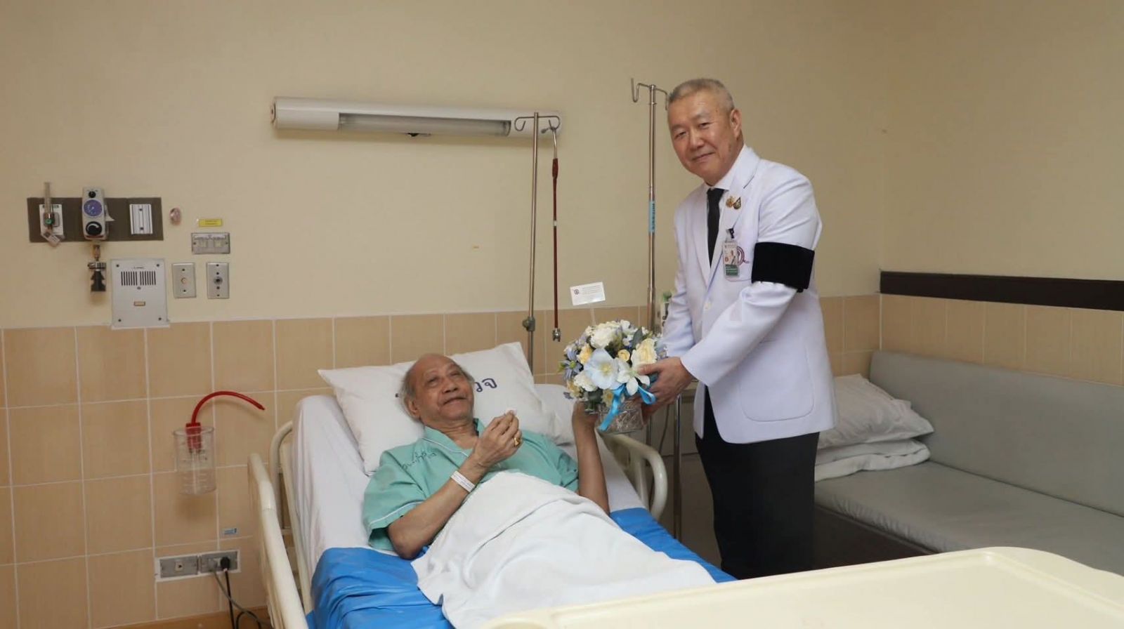 พร้อมมอบแจกันดอกไม้ เพื่อแสดงความห่วงใยและอวยพรให้มีสุขภาพแข็งแรงโดยเร็ว