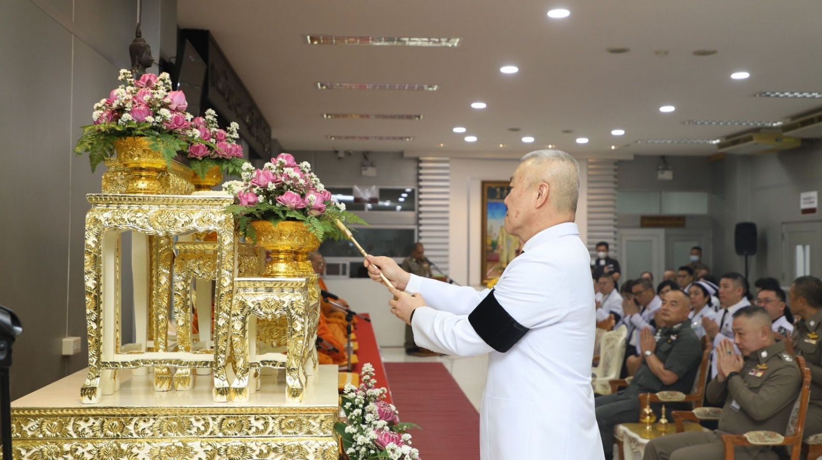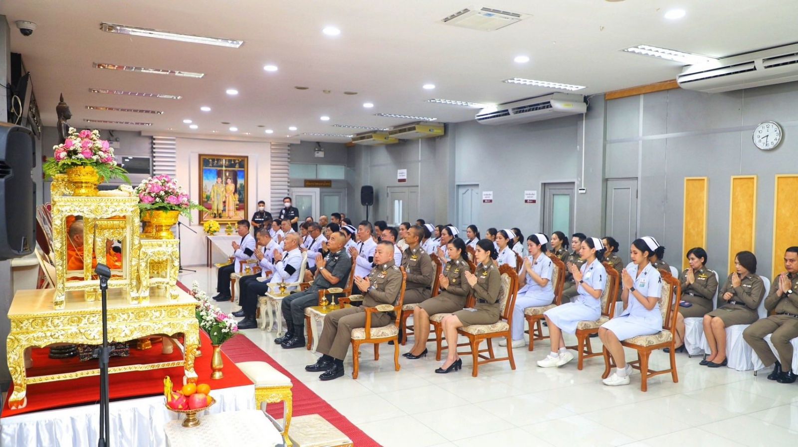 โดยมี พล.ต.ต.กิตติศักดิ์ ปลาทอง รอง ผู้บัญชาการตำรวจตระเวนชายแดน พล.ต.ต.พงพิพัฒน์ ศิริพรวิวัฒน์ รองผู้บัญชาการตำรวจตระเวนชายแดน รศ.พญ.ชลีรัตน์ ดิเรกวัฒนชัย ผู้อำนวยการโรงพยาบาลประสานมิตร คณะผู้บริหาร โรงพยาบาลตำรวจ ข้าราชการตำรวจ บุคลากรทางการแพทย์ และผู้เกี่ยวข้องเข้าร่วมพิธี เพื่อน้อมรำลึกถึงพระมหากรุณาธิคุณอันหาที่สุดมิได้