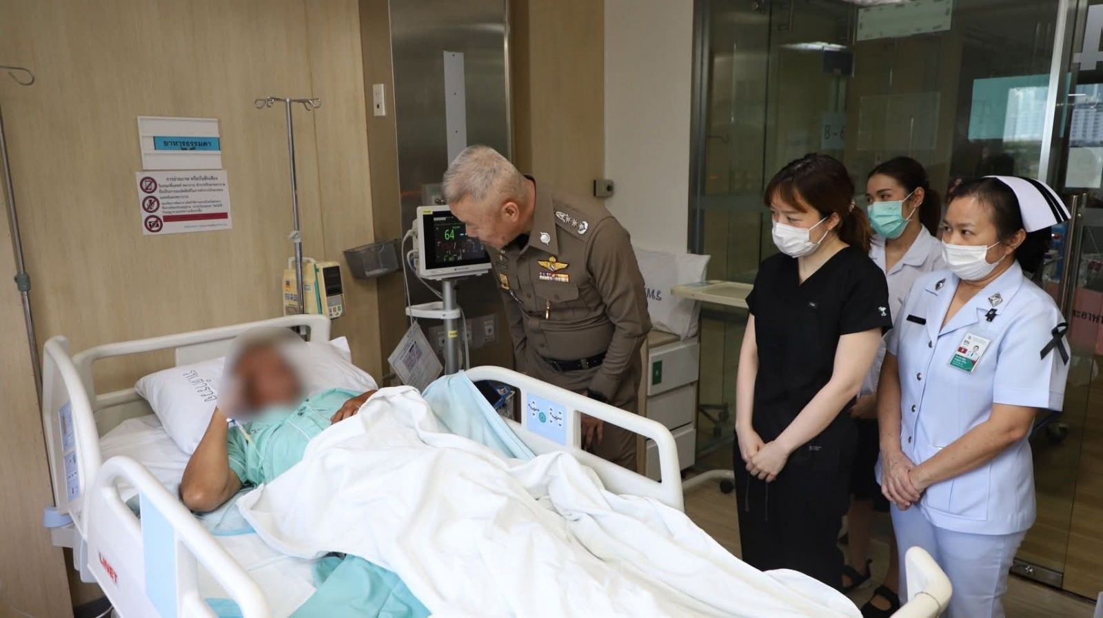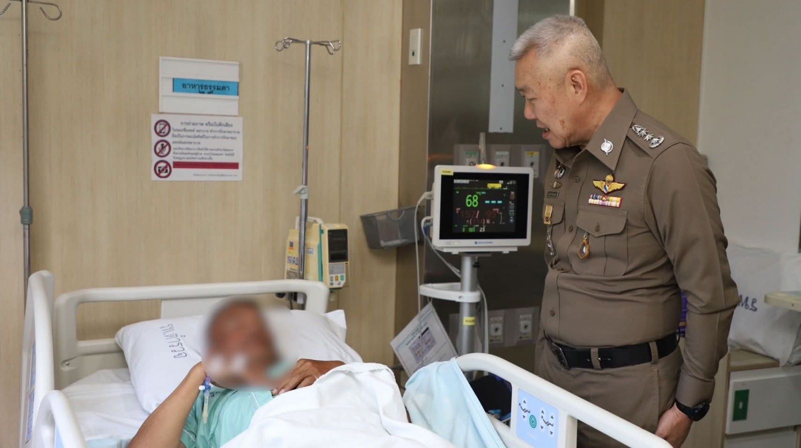 ทั้งนี้ พล.ต.ท.ไพบูลย์ เจียมอนุกูลกิจ รรท.พตร. ซักถามอาการ และกำชับให้แพทย์ พยาบาล ดูแลติดตามอาการอย่างใกล้ชิด พร้อมส่งกำลังใจให้หายจากอาการเจ็บป่วยและสามารถกลับมาปฏิบัติหน้าที่ได้โดยเร็ว