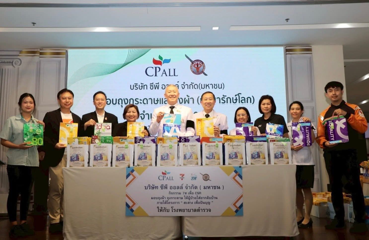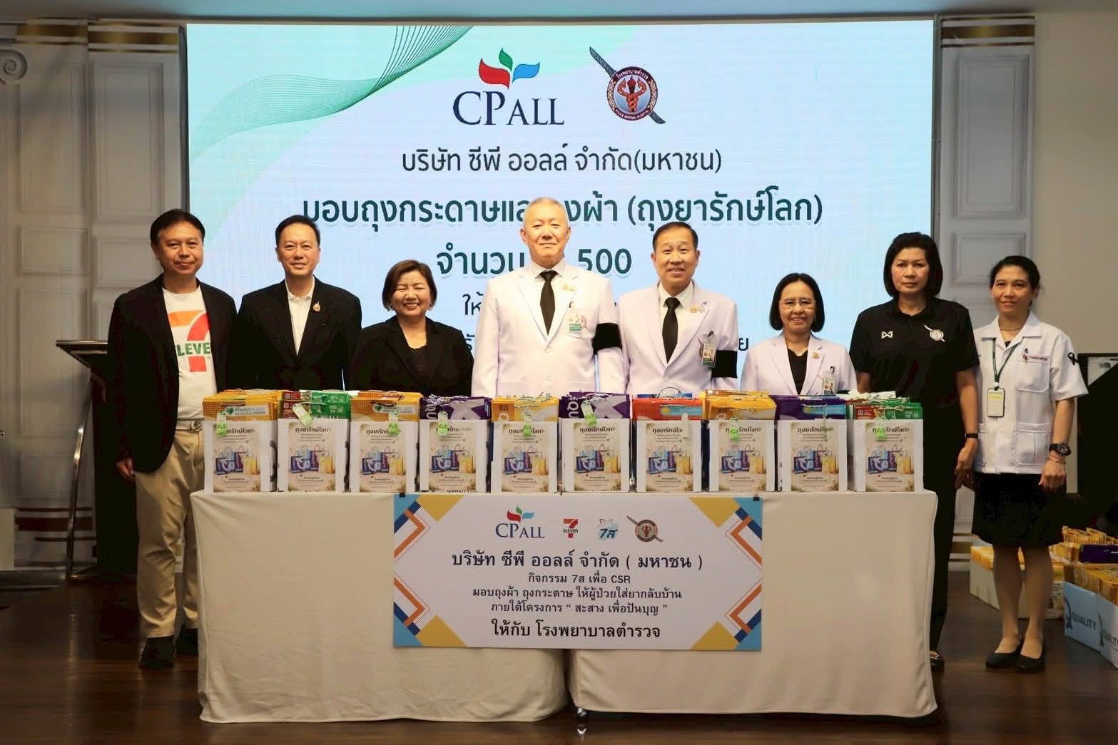 วันอังคารที่ 21 เมษายน 2569 ณ ลานกิจกรรมชั้น 2 อาคารมหาภูมิพลราชานุสรณ์ 88 พรรษาโรงพยาบาลตำรวจ พล.ต.ท.ไพบูลย์ เจียมอนุกูลกิจ รรท.พตร. พร้อมคณะผู้บริหาร โรงพยาบาลตำรวจ รับมอบถุงยารักษ์โลก” จำนวน 2,500 ใบ จากนายถนัดสิทธิ์ ปาละนันทน์ รองผู้จัดการทั่วไป บริษัท ซีพี ออลล์ จำกัด (มหาชน) พร้อมด้วยนางสาวพรธิภา เรืองฉาง ผู้ชำนาญการอาวุโส สำนักปฏิบัติการ และทีมคณะทำงาน 7ส (ส่วนกลาง) ตามโครงการ “สะสาง เพื่อปันบุญ” ภายใต้กิจกรรม 7ส โดยนำวัสดุเหลือใช้ภายในองค์กร เช่น ซองใส่กระดาษ A4 มาประดิษฐ์เป็นถุงกระดาษสำหรับใส่ยา เพื่อนำไปมอบให้แก่โรงพยาบาลภาครัฐ หลายโรงพยาบาล