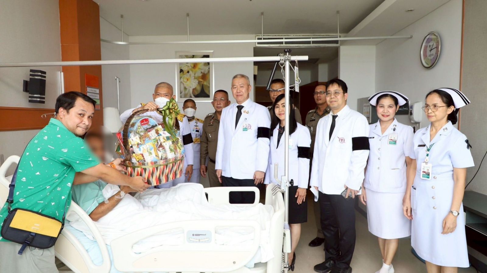 วันพฤหัสบดีที่ 23 เมษายน 2569 ณ หอผู้ป่วยข้าราชการตำรวจ ชั้น 11 อาคารมหาภูมิพลราชานุสรณ์ 88 พรรษา โรงพยาบาลตำรวจ พระเจ้าวรวงศ์เธอ พระองค์เจ้าอทิตยาทรกิติคุณ ทรงโปรดให้ นายอำพล เทียมสุวรรณ เจ้าหน้าที่งานในพระองค์ระดับ 7 ปฏิบัติหน้าที่เป็นผู้ดูแลพระตำหนักจักรีบงกช เชิญแจกันดอกไม้และตะกร้าสิ่งของประทาน มอบแก่ ด.ต.เสกสรร ทรัพย์กล้า ผบ.หมู่ จราจรสน.ลาดกระบัง