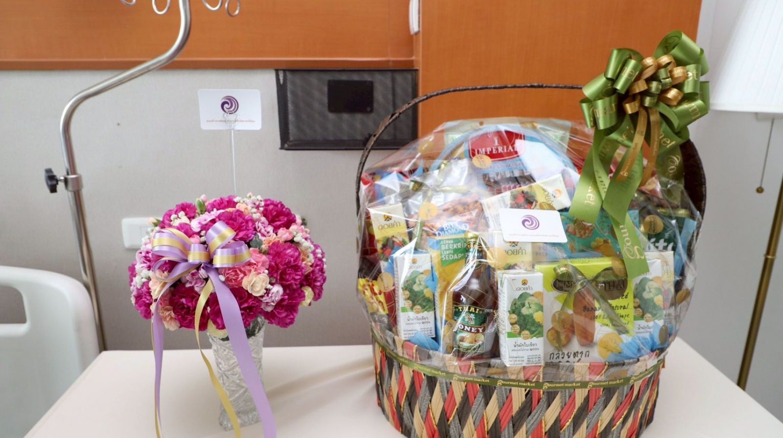 เชิญแจกันดอกไม้และตะกร้าสิ่งของประทาน ด.ต.เสกสรร ทรัพย์กล้า ผบ.หมู่ จราจร สน.ลาดกระบัง