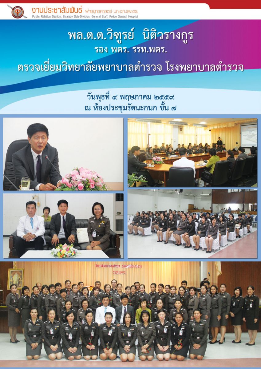 พล.ต.ต.วิฑูรย์ นิติวรางกูล รอง พตร. ตรวจเยียมกลุ่มงานวิทยาลัยพยาบาล โรงพยาบาลตำรวจ วันพุธที่ ๔ พฤษภาคม ๒๕๕๙ ณ ห้องประชุมรัตนะกนก