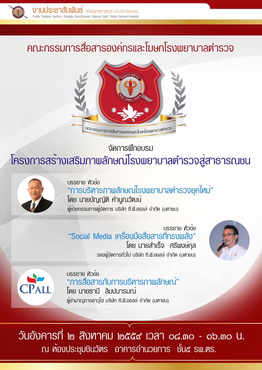 คณะกรรมการสื่อสารองค์กร และโฆษกโรงพยาบาลตำรวจ จัดการฝึกอบรมโครงการสร้างเสริมภาพลักษณ์โรงพยาบาลตำรวจสู่สาธารณชน