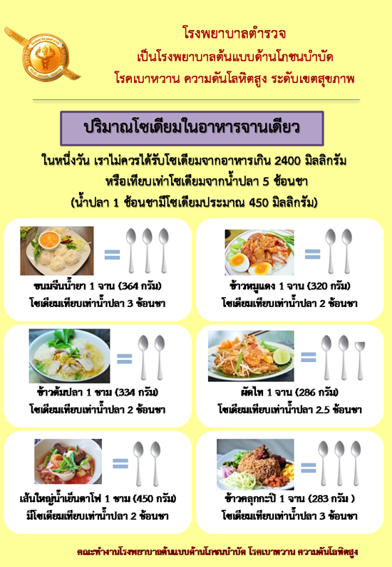 เกร็ดความรู้โภชนาการ "ปริมาณโซเดียมในอาหารจานเดียว(1)"
