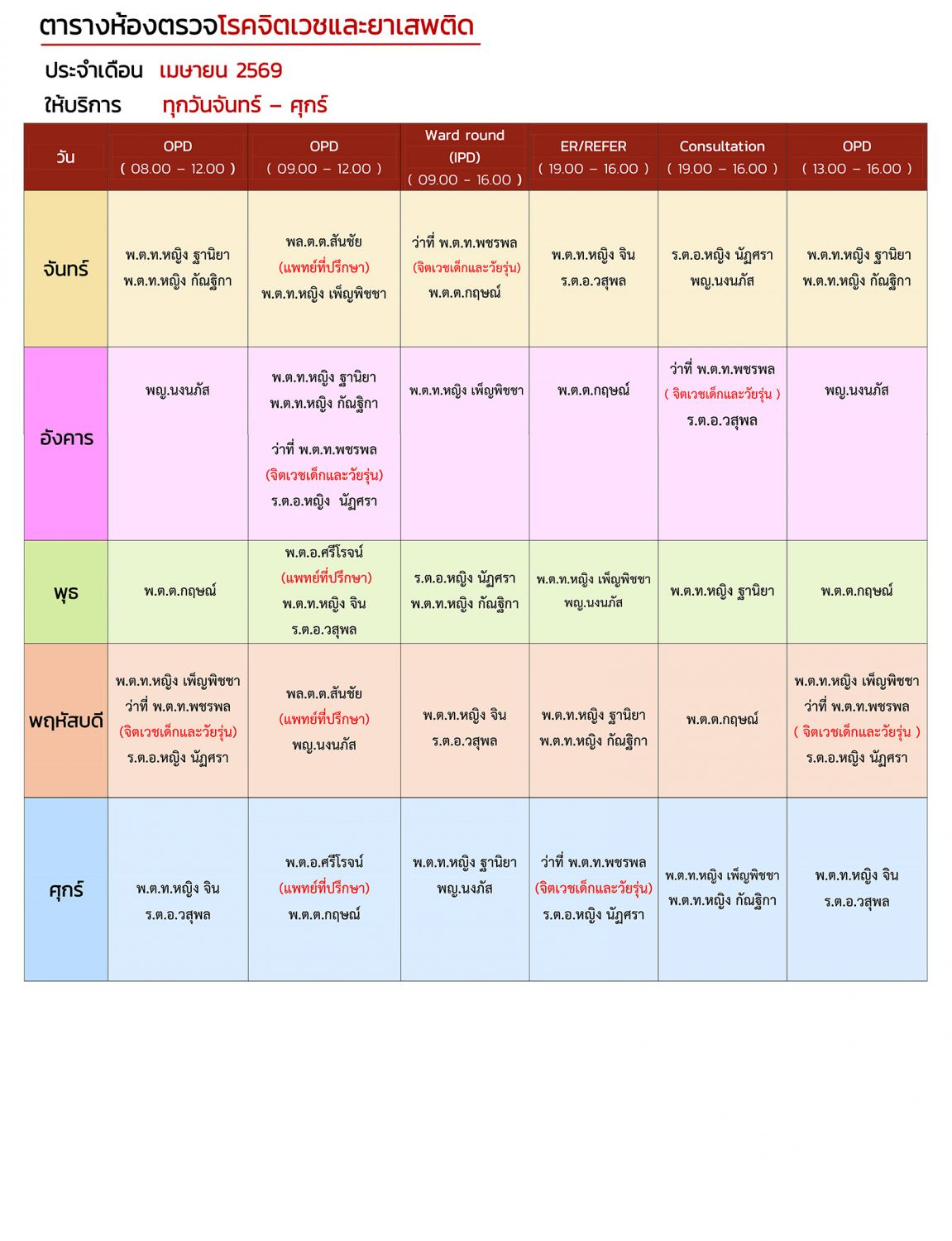 กลุ่มงานจิตเวชและยาเสพติด 2569
