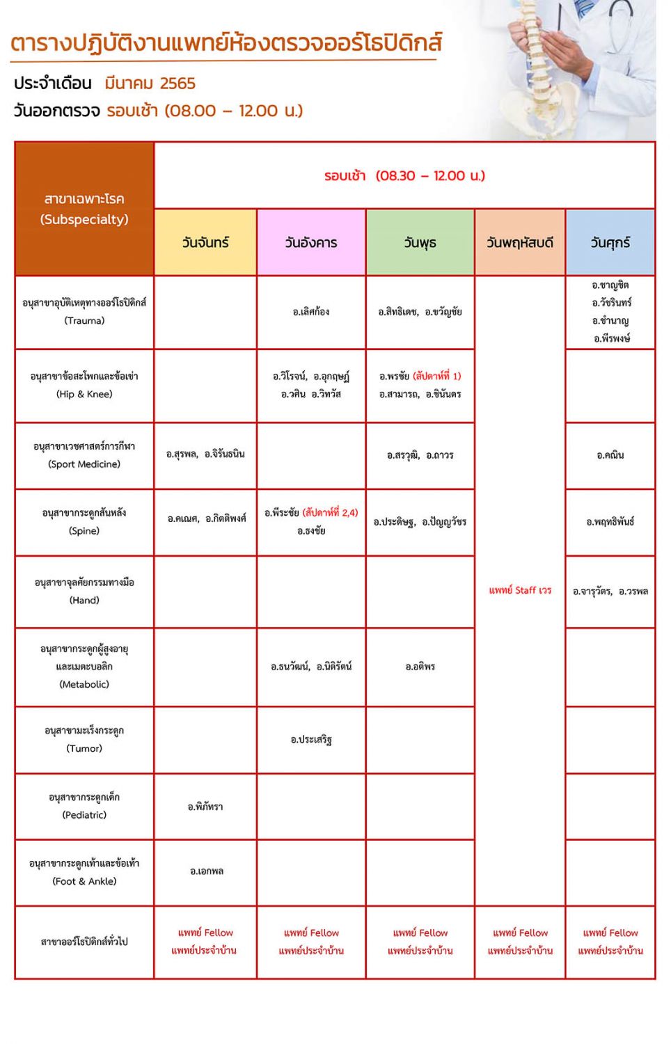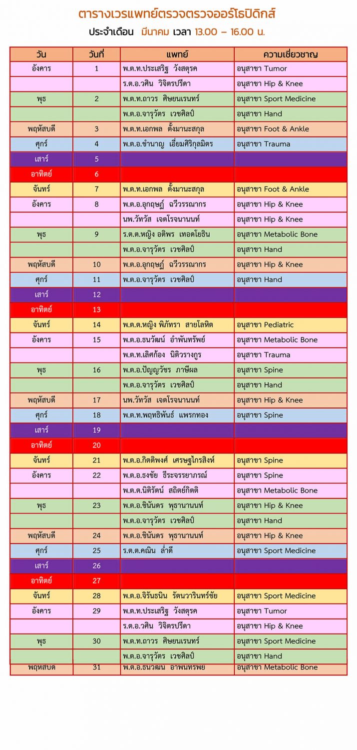 คลินิกนอกเวลาราชการ ออร์โธปิดิกส์