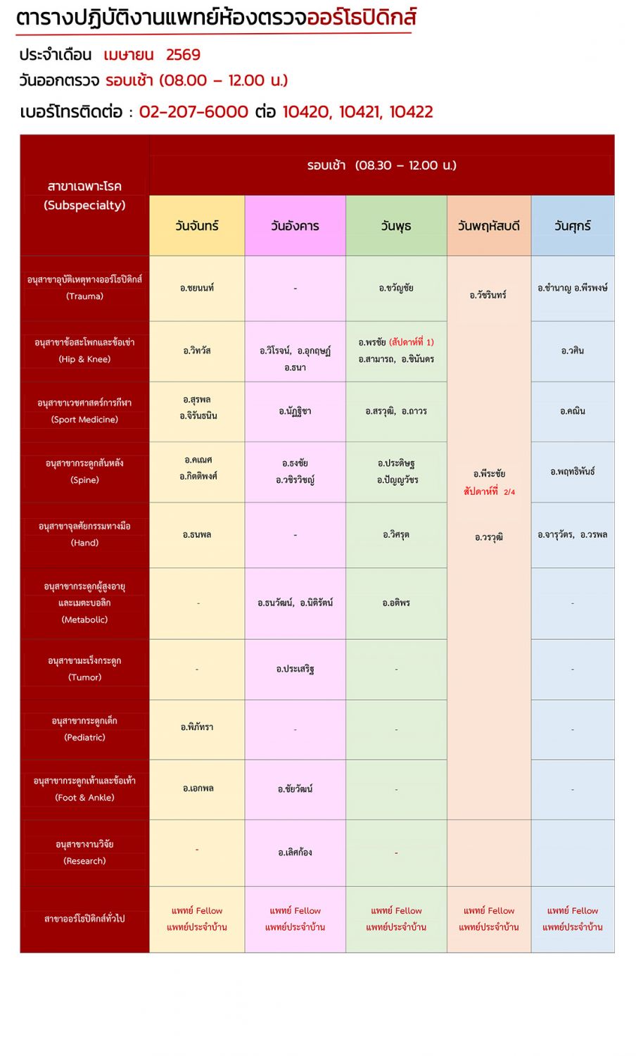 กลุ่มงานออร์โธปิดิกส์ 2569