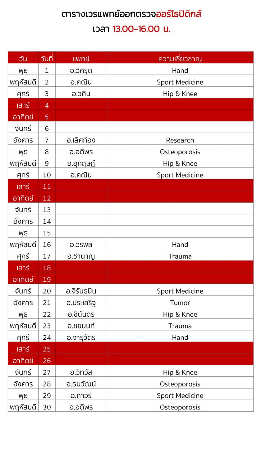 คลินิกนอกเวลาราชการ ออร์โธปิดิกส์